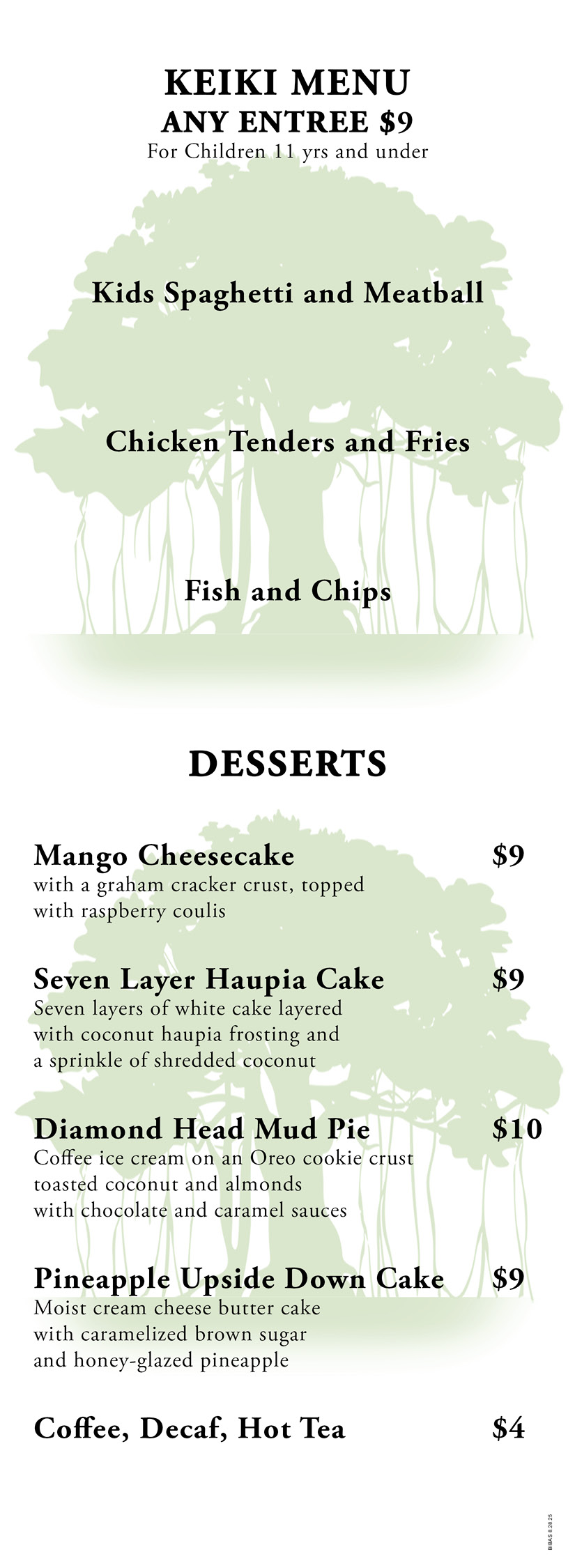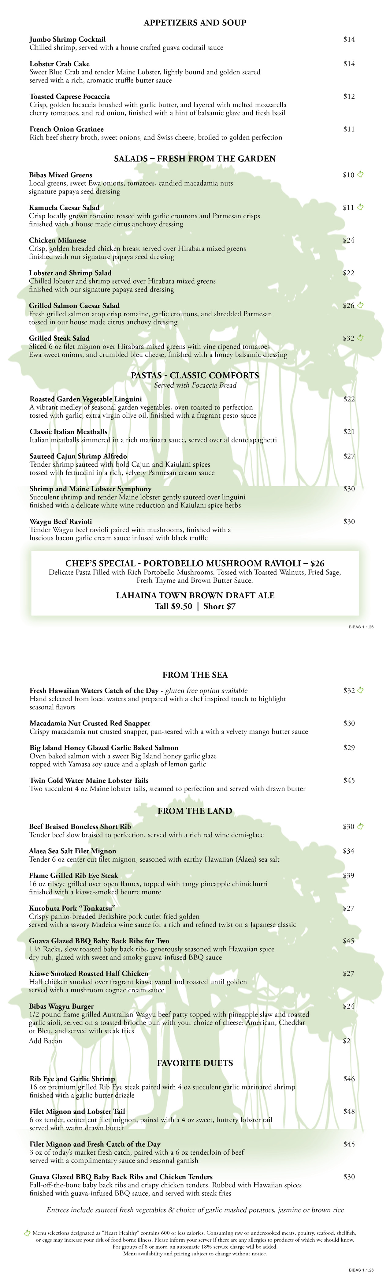 Bibas Courtyard Grill Menus