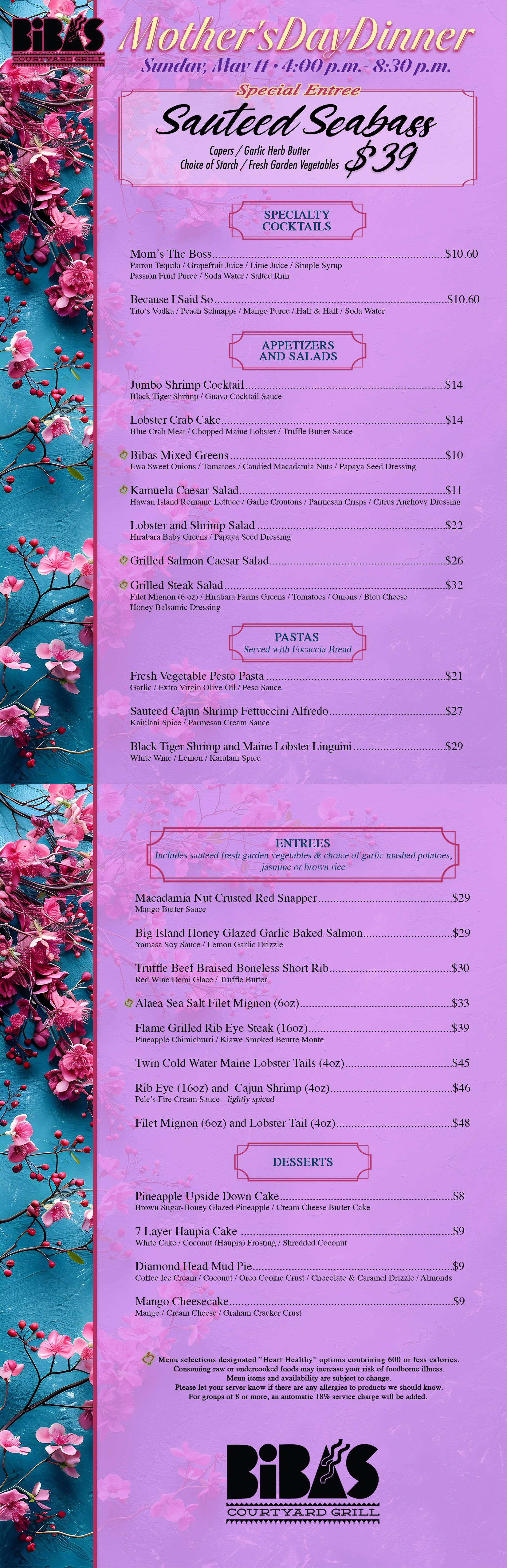 Mother's Day Dinner: 4 p.m. to 8:30 p.m.