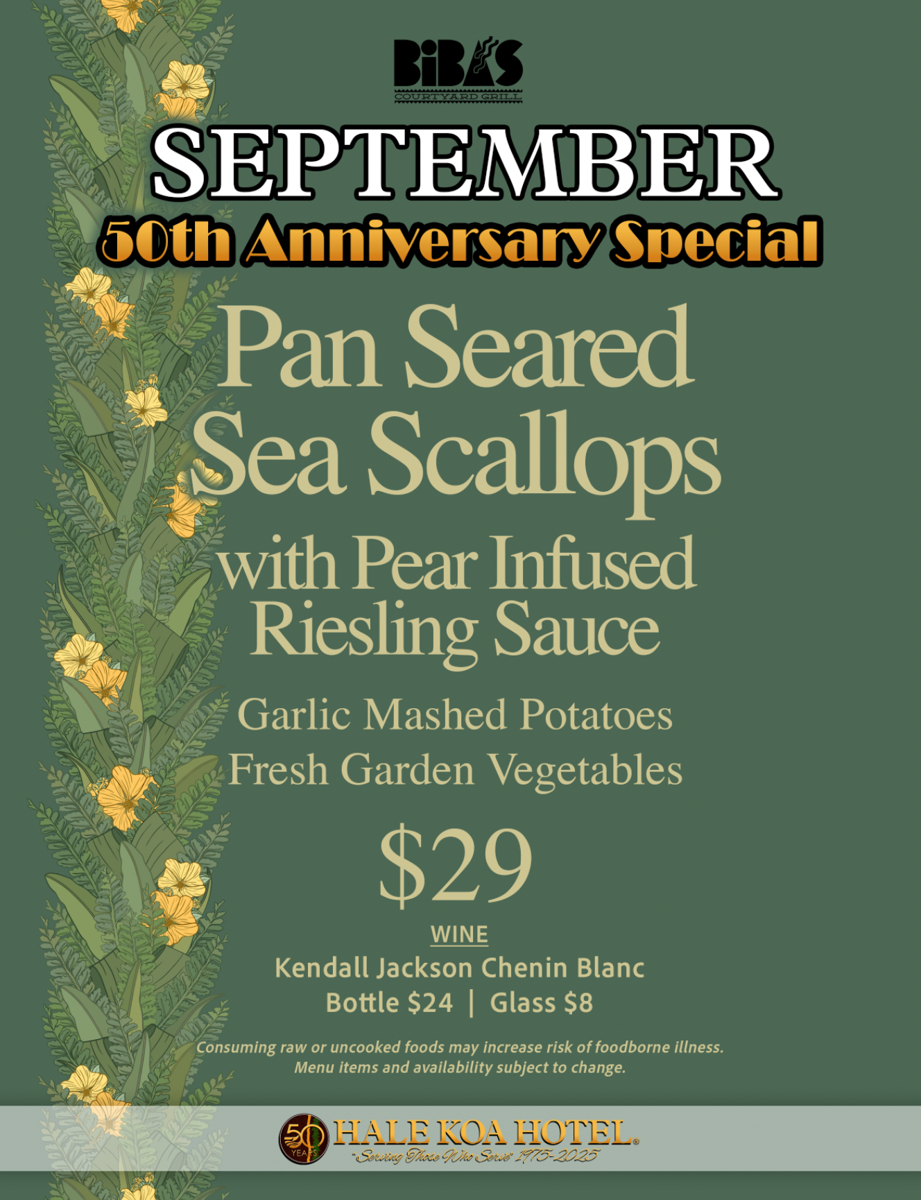 October: Pan Seared Sea Scallops - Click Here for Menu